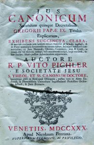1730. (RELIGION). PICHLER, VITO : JUS CANONCUM SECUNDUM QUINQUE DECRETALIUM GREGORII PAPAE IX, TITULOS EXPLICATUM... Venetiis : apud Nicolaum Pezzana, 1730.