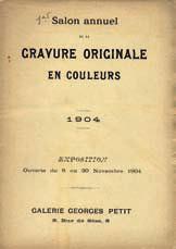 Galerie Georges Petit. Ensemble de catalogues du salon annuel de la Gravure Originale en Couleurs. Organisé par la Galerie Georges Petit, le premier catalogue d’exposition est de 1904, sous l’égide de la Société de la gravure originale en