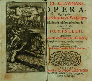 1715. (LITERATURA CLASICA). CLAUDIANI, CL. : OPERA, QUAE SUPERSUNT IO. GEORGIUS WALCHIUS ILUSTRAVIT OBSERVATIONIBUS... Lipsiae [Leipzig : ] Imp. Io. Ludov. Gleditschoo & Maur. Georg. Weidmanni, 1715.