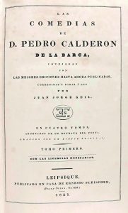 1827. (LITERATURA CASTELLANA). CALDERON DE LA BARCA ; KEIL, JUAN JORGE : LAS COMEDIAS DE D. PEDRO CALDERON DE LA BARCA cotejadas con las mejores ediciones hasta ahora publicadas. Leipsique : en casa de Ernesto Fleischer, 1827-1830.