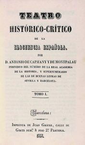 1848. (LITERATURA ESPAÑOLA). CAPMANY Y DE MONTPALAU, ANTONIO : TEATRO HISTORICO-CRITICO DE LA ELOCUENCIA ESPAÑOLA. Barcelona : Imp. Juan Gaspar, 1848.