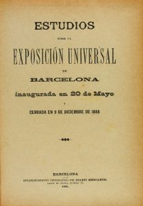 1888. ESTUDIOS SOBRE LA EXPOSICION UNIVERSAL DE BARCELONA INAGURADA EN 20 DE MAYO CERRADA EN 9 DE DICIEMBRE DE 1888. Bracelona : Est. Tip. del Diairo Mercantil, 1888.