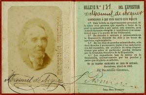 BILLETE DEL EXPOSITOR MANUEL DE ARQUER con retrato albúmina.