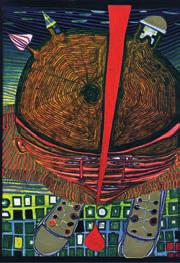 Pierre Restany. Hundertwasser. Illustrations en noir. éditions H. Kamer, 1957. édition originale, joint le carton d'invitation de la galerie Kamer. Joint. • Hundertwasser. Illustrations couleurs. Plaquette in-4. Tokyo Gallery, 1961. •
