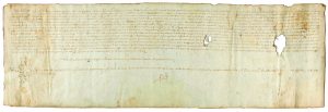 19 x 58 cm. Dos perforaciones con leve pérdida de texto.