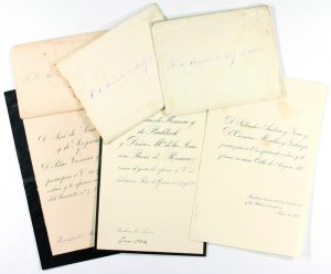 En su mayoría invitaciones de boda de la alta sociedad barcelonesa de finales del siglo XIX, dirigidas al literato y secretario del Banco de Barcelona, don Ricardo De Moly.