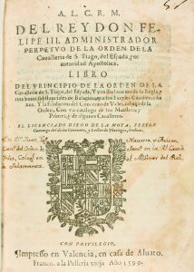 1599. (ORDEN DE SANTIAGO). MOTA, DIEGO DE LA : LIBRO DEL PRINCIPIO DE LA ORDEN DE LA CAVALLERIA DE SATIAGO. y vna declaracion de la Regla y tres votos substanciales de religion... y la fundacion del Conuento de Ucles... / el licenciado Diego de...