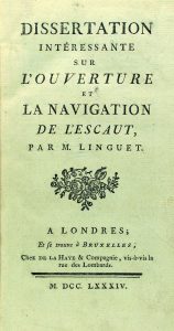 NOUVELLE DISSERTATION ET CONSIDERATIONS SUR L´OUVERTURE DE L´ESCAUT. Bruxelles : chez B. Le Francq, 1785. 82 p.