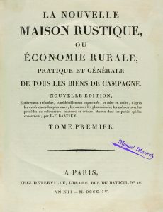 1804. (AGRICULTURA). BASTIEN, J. : LA NOUVELLE MAISON RUSTIQUE, OU ÉCONOMIE RURALE, PRATIQUE ET GÉNÉRALE DE TOUS LES BIENS DE CAMPAGNE. París : Imp. Deterville, 1804.