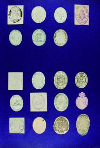 1750 ca. CONJUNTO DE APROX. 300 SELLOS ESTAMPILLADOS RECORTADOS DE DIFERENTES INSTITUCIONES :