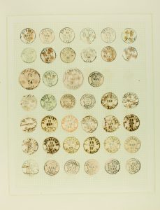 1850-1950 ca. COLECCION DE CIENTOS DE MARCAS DE FILATELIA Y PREFILATELIA RECORTADAS Y MONTADAS EN UN ÁLBUM :