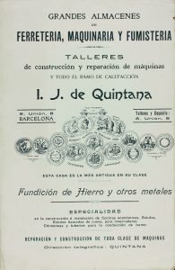 1880 ca. CONJUNTO DE PUBLICIDAD DE PRODUCTOS INDUSTRIALES Y ARTESANOS DE FERRETERIA Y MAQUINARIA I.J. DE QUINTANA : CATALOGOS, PEQUEÑOS CARTELES...