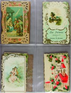 1890 ca. CONJUNTO DE 18 TARJETAS DE FELICITACIÓN DE NAVIDAD, TROQUELADOS O BORDADOS.