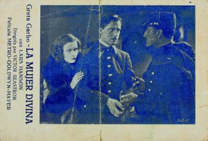 Tarjeta Metro, con Greta Garbo y Lars Hanson. En el dorso, publicidad de Gran Cine Sport.