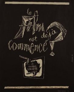 Le Film est déjà commencé? Affiche imprimée en blanc sur fond noir, 1951, pour le film de Lemaître, réalisée par de Turville. Format 48x59 cm.