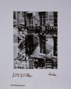 Le sourire de ma mère parmi les signes maléfiques. Montage photographique tiré à l'occasion du décès de sa mère. Certificat signé au dos le 17 décembre 1994. Tirage argentique format 30x40 cm. Titré et signé par Lemaître.