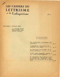 des exemplaires non numéroté. •Arguments lettristes Revue dirigée par Isidore Isou. Comité de rédaction: Roberto Altmann, M. Le-maître, R. Sabatier, J. Spacagna, Frédéric Studeny, Roberdhay. N° 1, in-4 agrafe en tête. 11 pages de textes non signés. Avant-garde lettriste et esthapeiriste. Directeurs: Roberto Altmann & Isidore Isou. N° 2, nov. - déc. 1964. In-4 agrafé. Textes d’Isou, Lemaître, Altmann,