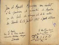 Jean Messager. Invitation à la pendaison de Crémaillère du Moulin. Feuille in-4, papier Auvergne, manuscrite avec le plan d'accès au Moulin sur bords du Longres et de la vallée du Doubs. Le 13 juillet 1962.