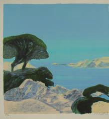 Roger Mühl. Lithographie couleurs. E. A., cachet sec Mourlot. Signée. 60x68,5 cm. Jointe Roger Muhl. Sérigraphie 23x30 cm signée et datée en bas à droite. Les deux estampes.