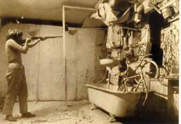 F. Jointe Une photographie de presse, Keystone, de Niki de Saint Phalle à la carabine. Titrée au dos sur feuillet Plus de pinceau, une carabine.