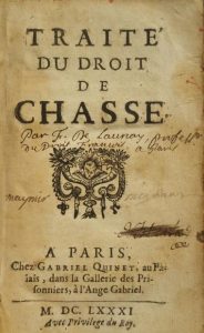 [LAUNAY (François de)] Traité du droit de chasse. A Paris, Gabriel Quinet, 1681;