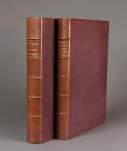 Deux volumes grands in-4, maroquin, dos à nerfs, dentelle dorée sur contre plat, doublé et garde de tissu moiré, tranches dorées. (Quelques rousseurs).