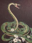 Serpent sur premier plat, vautour au dos et autre serpent sur second plat pour le livre de la jungle.