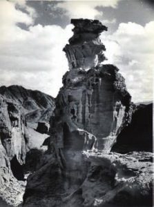 P. Tairraz. Ensemble de photographies en noir du Neguev (7), paysages rocheux, installation de sculptures,