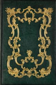 fort grand in-8, chagrin vert orné sur plats et dos de fers dorés d'un décor à la rocaille, tranches dorées.