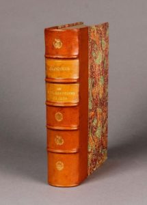 fort grand in-8, demi chagrin gold, dos à nerfs, orné de petits fers dorés spéciaux, tranches dorées.