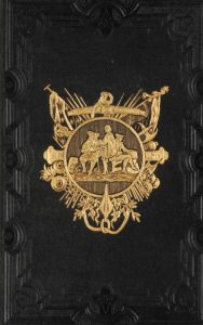 grand in-8, percaline noire ornée de fers dorés spéciaux, personnages entourés de nombreux attributs du parfait Colon, dos assorti, navire sur deuxième plat, tranches dorées.