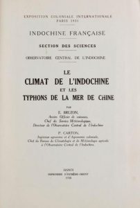 BRUZON (E.) et CARTON (P.) Le Climat de l'Indochine et les typhons de la mer de Chine. Hanoi, Imprimerie d'Extrême-Orient, 1930;