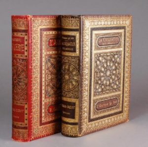 fort volume in-4, cartonnage rouge de l' éditeur orné de fers dorés et noir richement orné de motifs orientaux, rosace centrale, plats et dos, entrelacs à motifs d'inspiration Mauresque, tranches dorées (petits frottements).