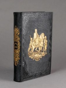 grand in-8, percaline noire ornée de fers spéciaux dorés, cavalier arabe accompagné, dos orné d'attributs, deuxième plat illustré d'une belle vignette historiée, tranches dorées.