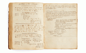 "Livre de mathématiques fait par ma mère, écrit de sa main" (sur le premier plat de la reliure) ;