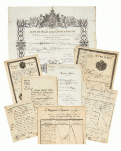 •Brevet de lieutenant dans la légion du département de Seine-et-Oise (Paris, 27 février 1816, signé par le duc de Feltre) ;