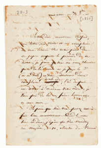 Provenance : Archives Sangnier (cachet) Bibliographie : Alfred de Vigny, Correspondance, 20-3 (repr. ).