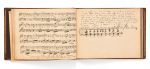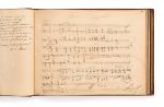 • f. 12r : Franz Liszt (1811-1886), "Moïse - Fragment" (partition autographe signée de 5 doubles portées, datée "février" ; pour Loïc Chotard, "il ne s'agit apparemment pas d'une paraphrase du Moïse de Rossini mais peut-être d'une esquisse originale, thème et variations composés "après la lecture" du "Moïse" de Vigny") ;
