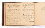 Précieux album amicorum offert par Alfred de Vigny à son épouse Lydia vers 1825. Le couple le fit compléter pendant plus de trente ans par ses amis et connaissances, notamment "tous les noms de la première cohorte romantique", et constitua ainsi "l'un des plus prestigieux albums romantiques connus" (Loïc Chotard).