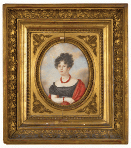 Cette miniature anonyme semble être l'unique portrait représentant la comtesse Alfred de Vigny, née Lydia Bunbury. Il a sans doute été réalisé au moment de leur mariage, en 1825.