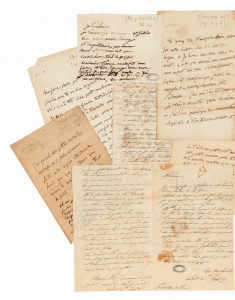 Ensemble de quatre petits billets d'Alfred de Vigny à sa mère :