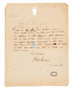 La seconde lettre connue d'Hector Berlioz à Alfred de Vigny qui s'étaient rencontrés quelque temps auparavant par l'entremise d'Auguste Barbier et d'Auguste Brizeux :