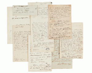 Adèle HUGO 1803-1868. Réunion de six lettres et un billet autographes signés, à Alfred de Vigny [Paris], [25 août et 14 décembre 1846], 13 janvier, [2], 7 et [8 ?] février [1847], [28 février 1850].