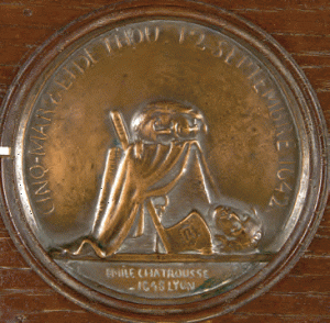 Ce médaillon commémore l'exécution des deux héros mis en scène par Vigny, Henri d'Effiat, Marquis de Cinq-Mars et François-Auguste de Thou, décapités pour avoir comploté contre le Cardinal de Richelieu.