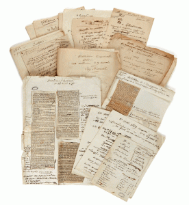 Ensemble de notes autographes d'Alfred de Vigny prises durant les séances de l'Académie française ou juste après celles-ci puis retravaillées, principalement de 1854 à 1861, période durant laquelle le poète suivit avec diligence les travaux académiques et s'engagea aux côtés de ses pairs pour défendre la liberté de l'institution, notamment lors de la querelle, tant juridique que littéraire et politique, du prix Décennal.