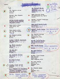 Steinberg. Liste des invités américains à l'exposition organisée galerie Maeght le 11 mai 1977. Sur papier à en-tête du New Yorker Steinberg aprécisé grâce à des logo-grammes les personnes à inviter ainsi que les avantages qui leur sont