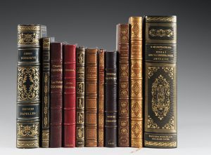 In-8°, demi-maroquin bleu nuit à coins, filet doré bordant les plats, dos lisse orné d'un décor doré à pastilles mosaïquées, tête dorée, couverture conservée (Semet & Plumelle).