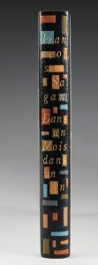 In-8°, demi-maroquin noir à petits coins carrés, plats de papier blanc glacé, dos lisse orné d'un décor géométrique mosaïqué composé de petits rectangles horizontaux et verticaux, tête dorée, couverture conservée, étui (P.-L. Martin).