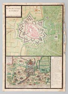 PLAN MANUSCRIT AQUARELLÉ de la VILLE d’ARDRES. Ce premier plan est accompagné en pied de sa légende manuscrite et d’un second plan, gravé par huBert & lomBaerts, puis aquarellé, de la même ville, datant de la fin du XVIe siècle (275 x 195 mm). Voir la reproduction
