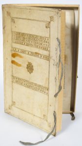 EMBOÎTAGE en forme de livre pour la conservation de documents personnels, plein vélin, in-f°, 19e s.